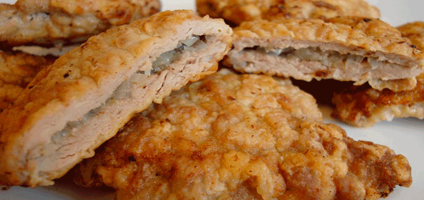 Затем накрываем второй половинкой мяса. Должен получиться «кармашек» с начинкой. Слегка придавливаем рукой.