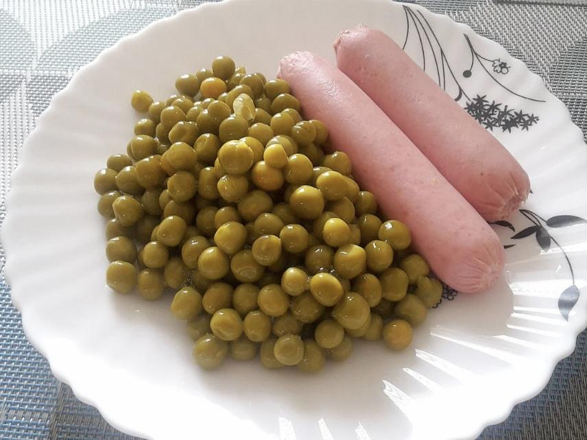 Блюдо, как правило, предлагалось на завтрак и считалось изыском. Горошек сцеживали от жидкости и выкладывали на тарелку, в качестве гарнира к отварным сосискам. Для вкуса добавляли горчицу. Ну, а с белым хлебом блюдо приобретало схожесть с американским хот-догом.