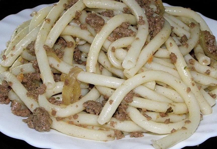 Это был наш ответ итальянской пасте «Болоньезе». Макаронные изделия в Союзе изготовляли из разных сортов муки, потому по консистенции они были далеки от классической пасты. Вместе с перекрученными отварными обрезками, ливером и луком, слипшиеся макароны больше походили на кашу.