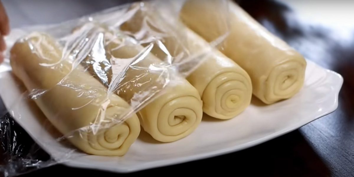 Скручиваем пласты в 4 рулета и убираем в теплое место на 10 минут.