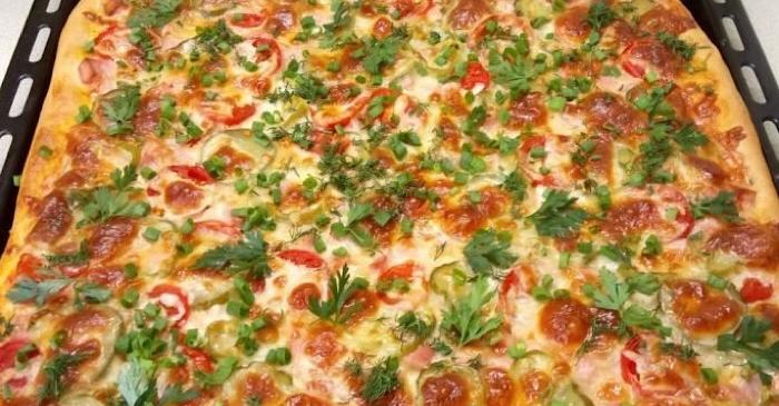 Выкладываем тесто на противень, смазанный маслом. Выкладываем на тесто начинку.