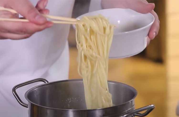 Отварите лапшу, следуя инструкции на упаковке. Промойте горячей водой.