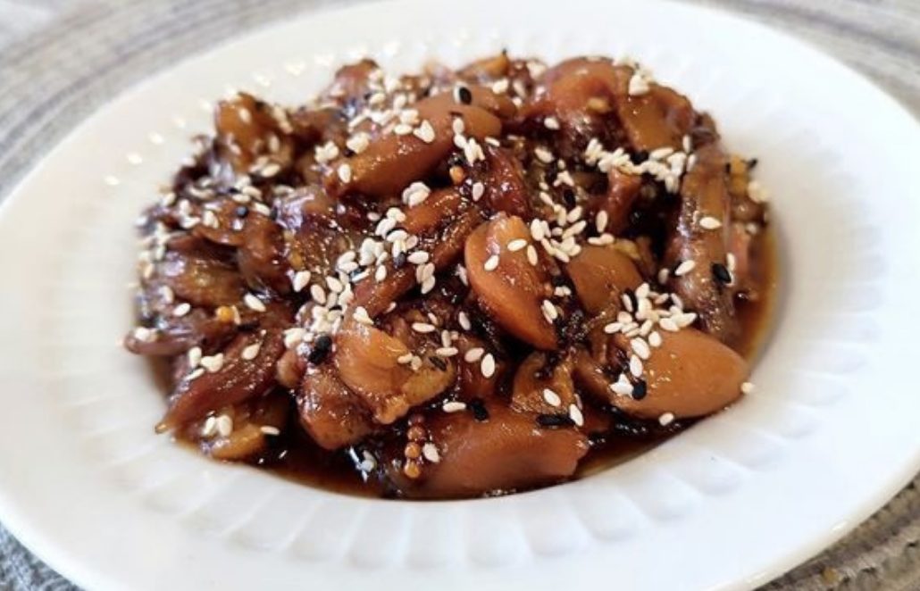 - Разогрейте сковороду, выложите туда сваренные ножки, добавьте имбирь.