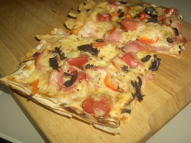 Сверху накройте вторым лавашем и снова смажьте соусом. Основа для пиццы готова.