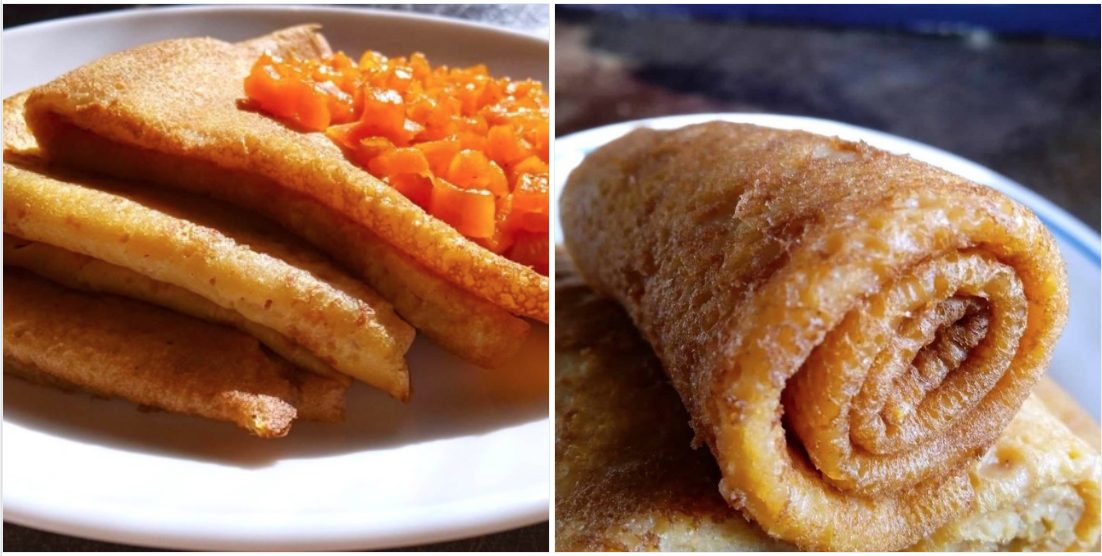 Тесто должно получиться чуть гуще, чем для обычных блинов, но не слишком плотным. Если оно получилось слишком густым, можно добавить немного воды.