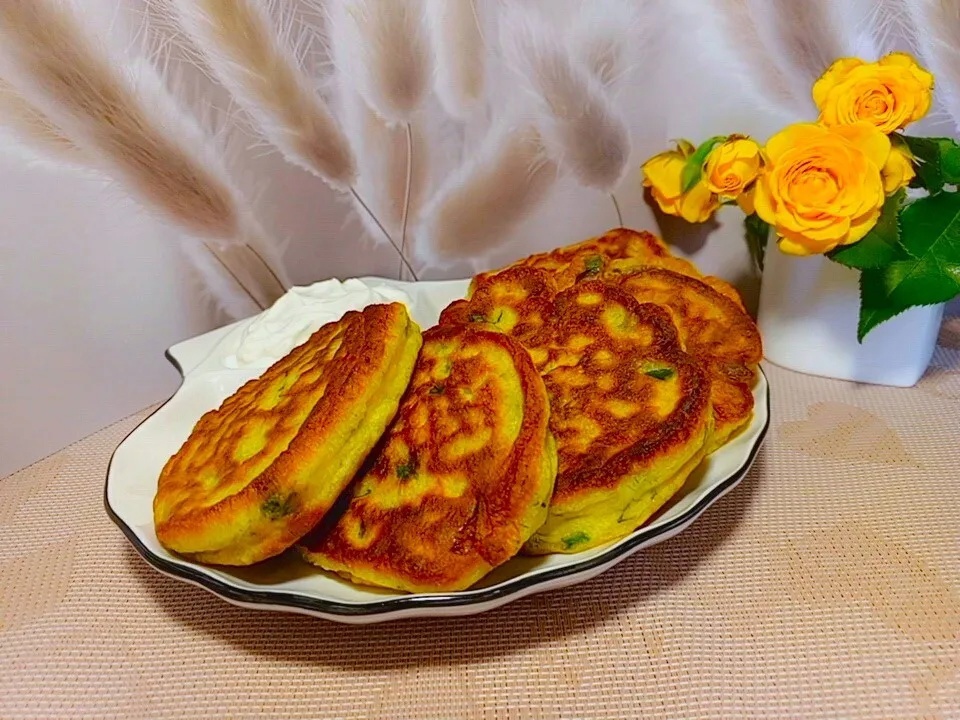 - Выложите тесто столовой ложкой, придавая форму пирожков. Обжаривайте с двух сторон под крышкой на среднем огне до золотистой корочки.