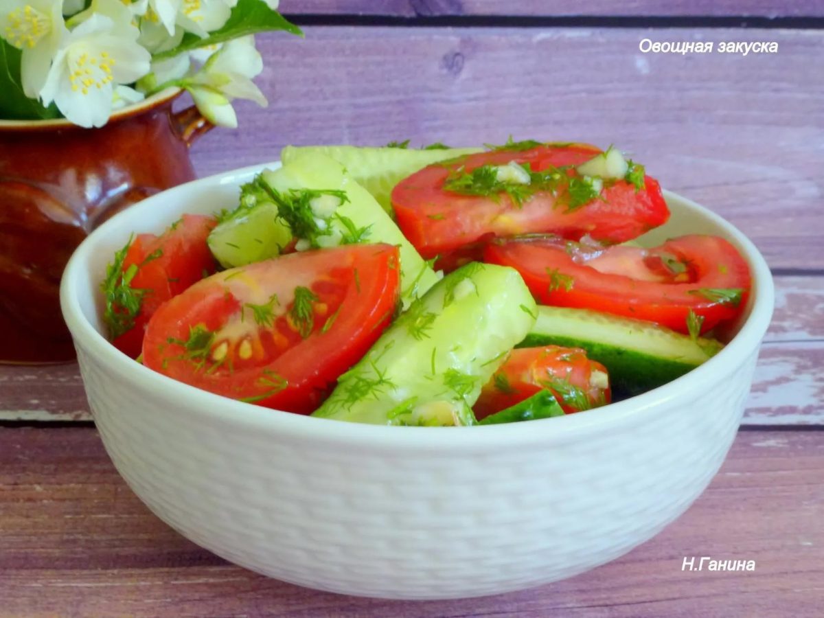 Помидоры нарезать на 4-5 частей, огурцы – на небольшие брусочки.
