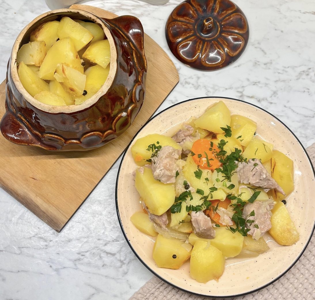 - Накрываем горшочек крышкой и отправляем в предварительно разогретую до 180 °C духовку.