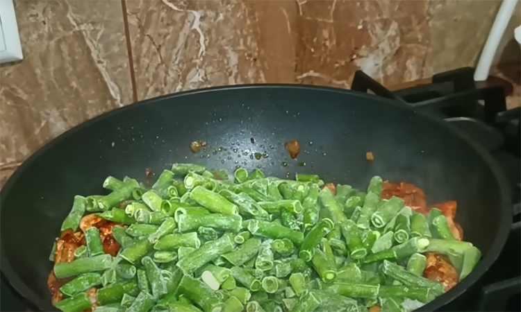 - Замороженная стручковая фасоль — 800 г