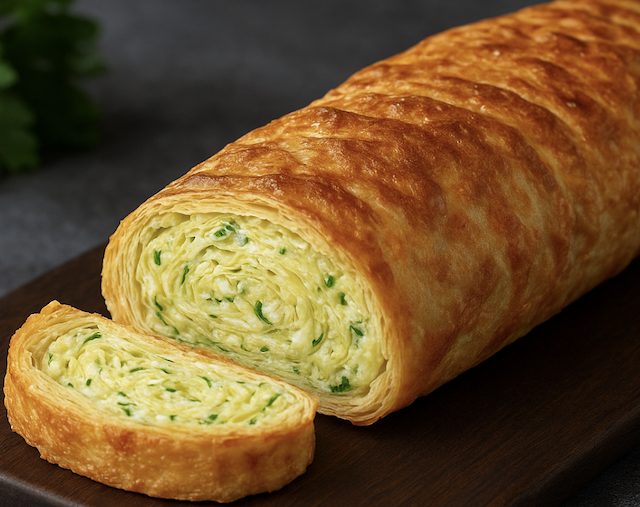 Готовый рулет можно нарезать на порционные кусочки или взять целым в дорогу. Можно есть и в горячем, и в холодном виде — одинаково вкусно. Отлично сочетается со сметаной, йогуртовым соусом или овощным салатом.