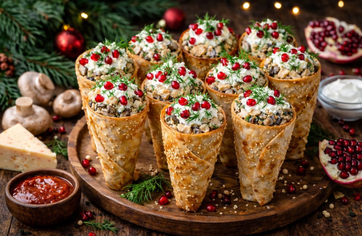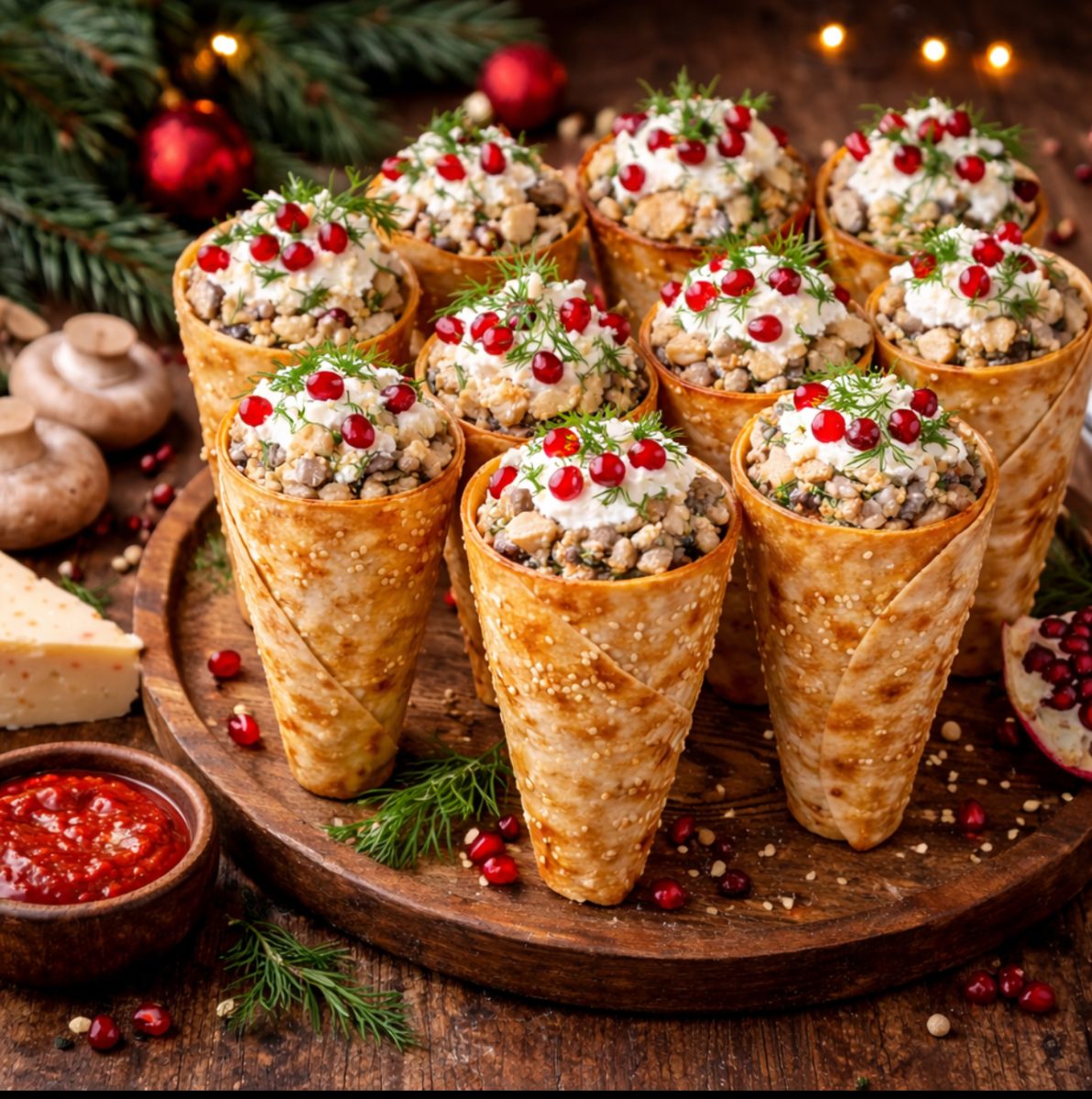 Готовим заранее, а 31-го только наполняем! Хрустящие кулёчки из лаваша — настоящая палочка-выручалочка для праздника.